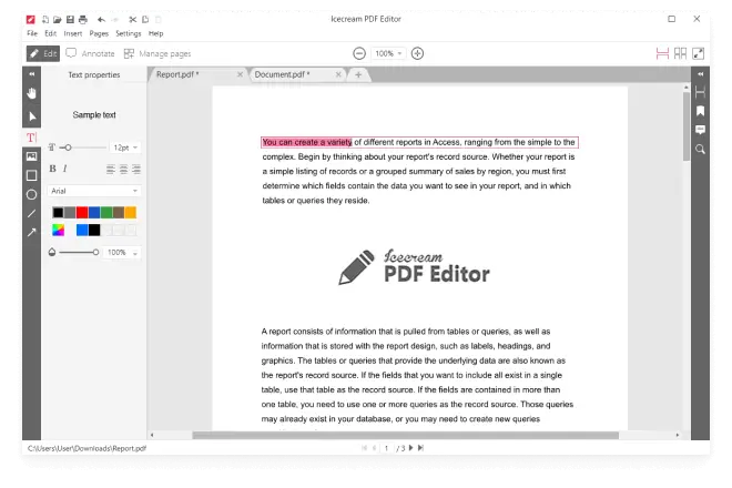 O Icecream PDF Editor Pro 3.28 é um editor de PDF completo e intuitivo, desenvolvido pela Icecream Apps, que permite visualizar, editar, anotar e gerenciar documentos PDF com facilidade. Ele combina praticidade e poder de edição em uma interface amigável, ideal tanto para usuários domésticos quanto profissionais.